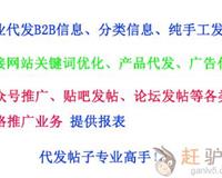专业的代发产品信息 B2B帖子信息代发 分类信息帖子代发 专业代发平台信息就找我们,我们具有专业的、多年互联网营销经验,提供专业的纯手工信息代发、广告代发服务,提供注册、代发一站式服务,商务网站,供求网站,分类信息,论坛发布、公众号优化等,我们不是软件发布,不是软件发布,是纯手工人工注册、发布!详情咨询QQ3613973584..